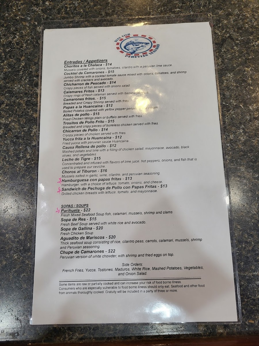 Introducing the Menu at Blue Fish Peruvian Restaurant Seafood